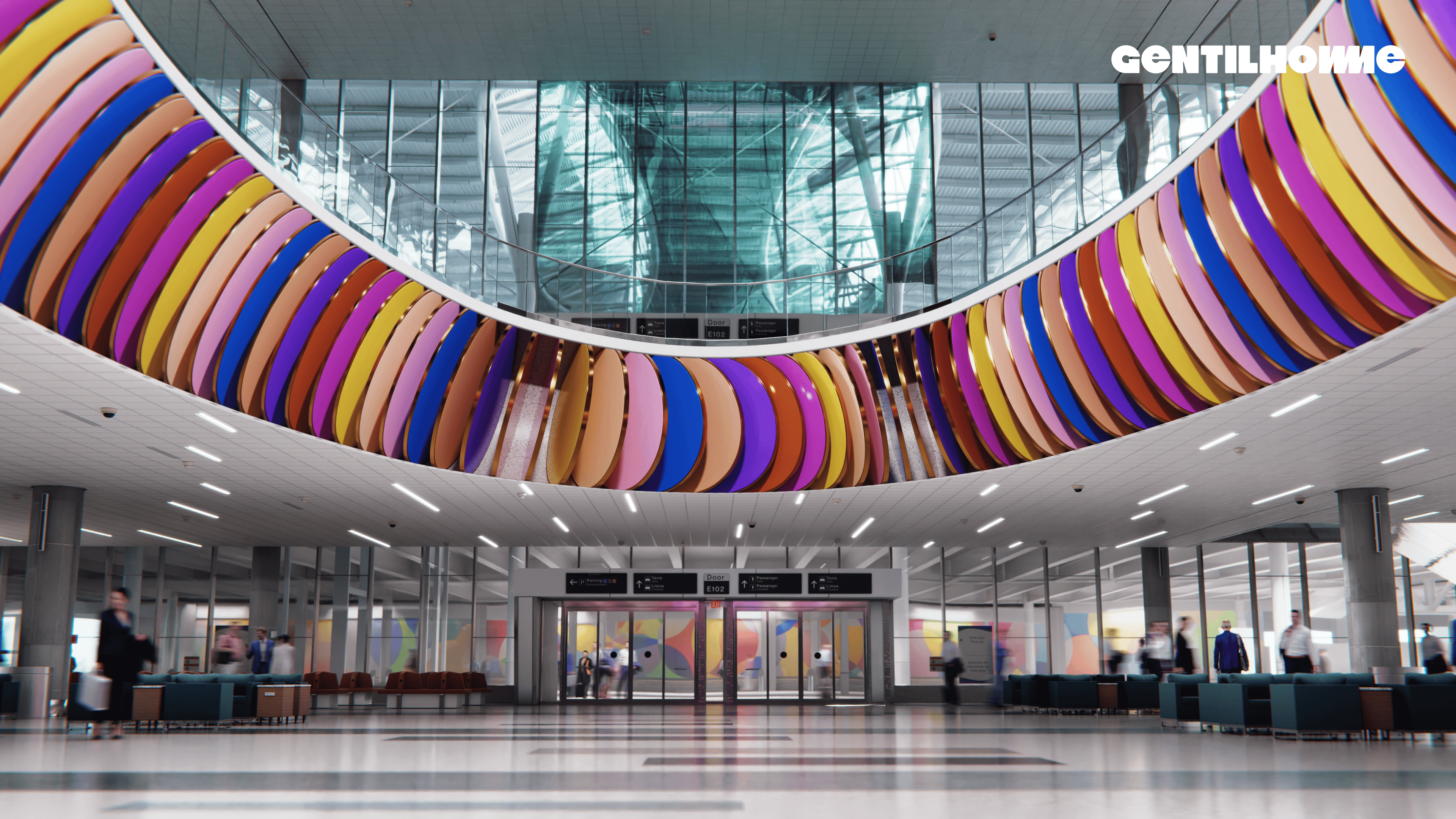 The installation emerged from close collaboration between integrator Ford AV and creative studio Gentilhomme, whose artistic direction transformed the structure into an immersive media environment rather than a conventional display system. Built from custom curved LED technology manufactured by Nanolumens and powered by PIXERA media servers, the Oculus required a sophisticated technical ecosystem capable of delivering seamless visuals across its complex geometry while maintaining the reliability expected of critical airport infrastructure.